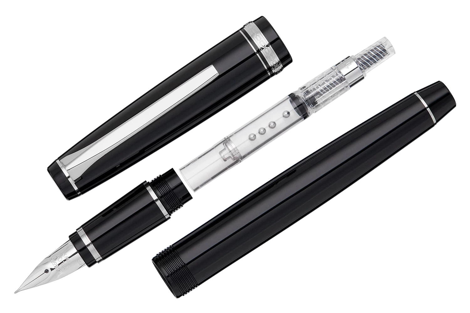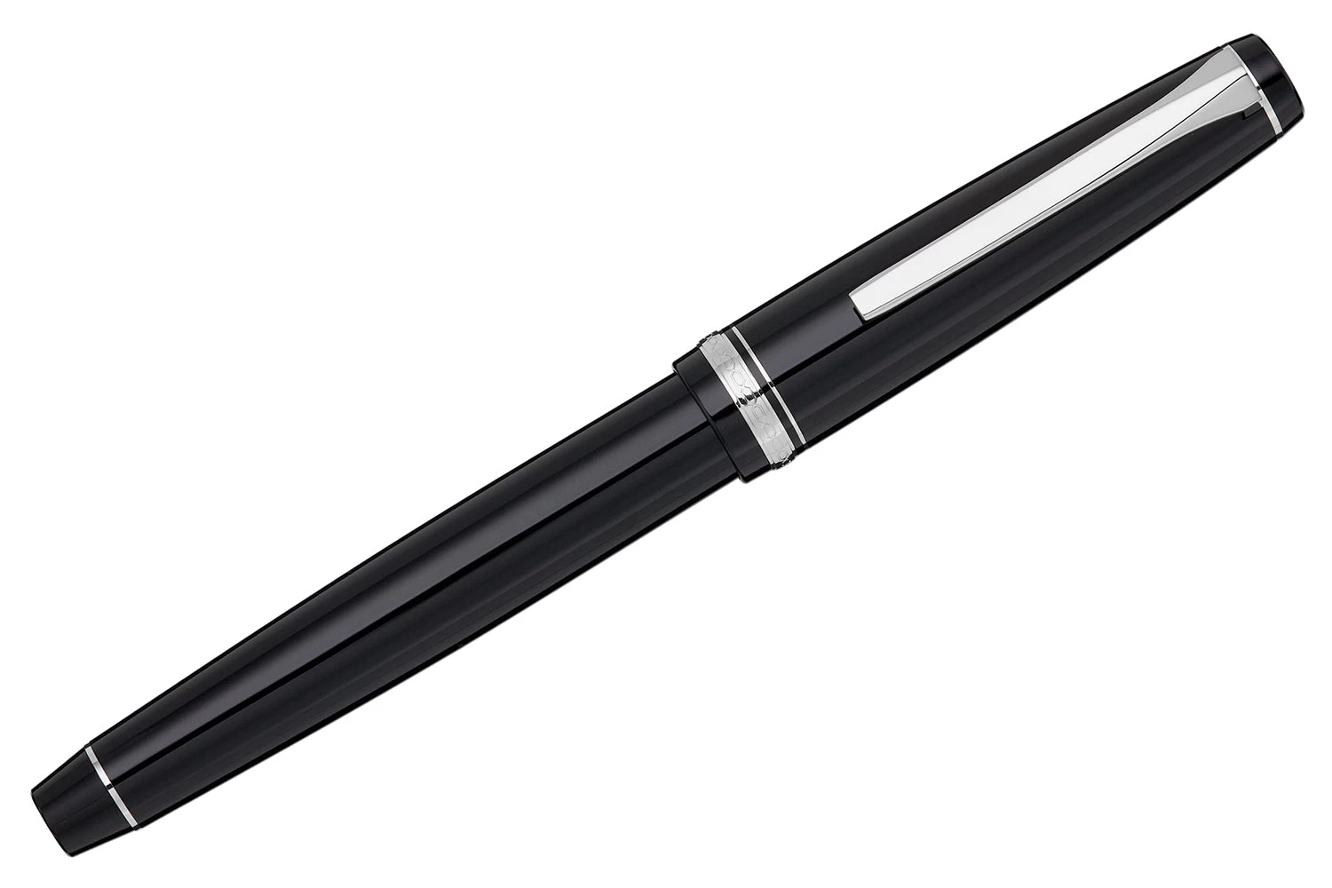 The Pilot Falcon (previously known as the Namiki Falcon) is an iconic pen in the fountain pen world. It is most famous for its rhodium-plated 14k gold soft nib, which provides line variation when you change your writing pressure. This solid black fountain pen has rhodium trim and includes a Con-40 converter and a Pilot/Namiki ink cartridge, packaged in a Pilot gift box.