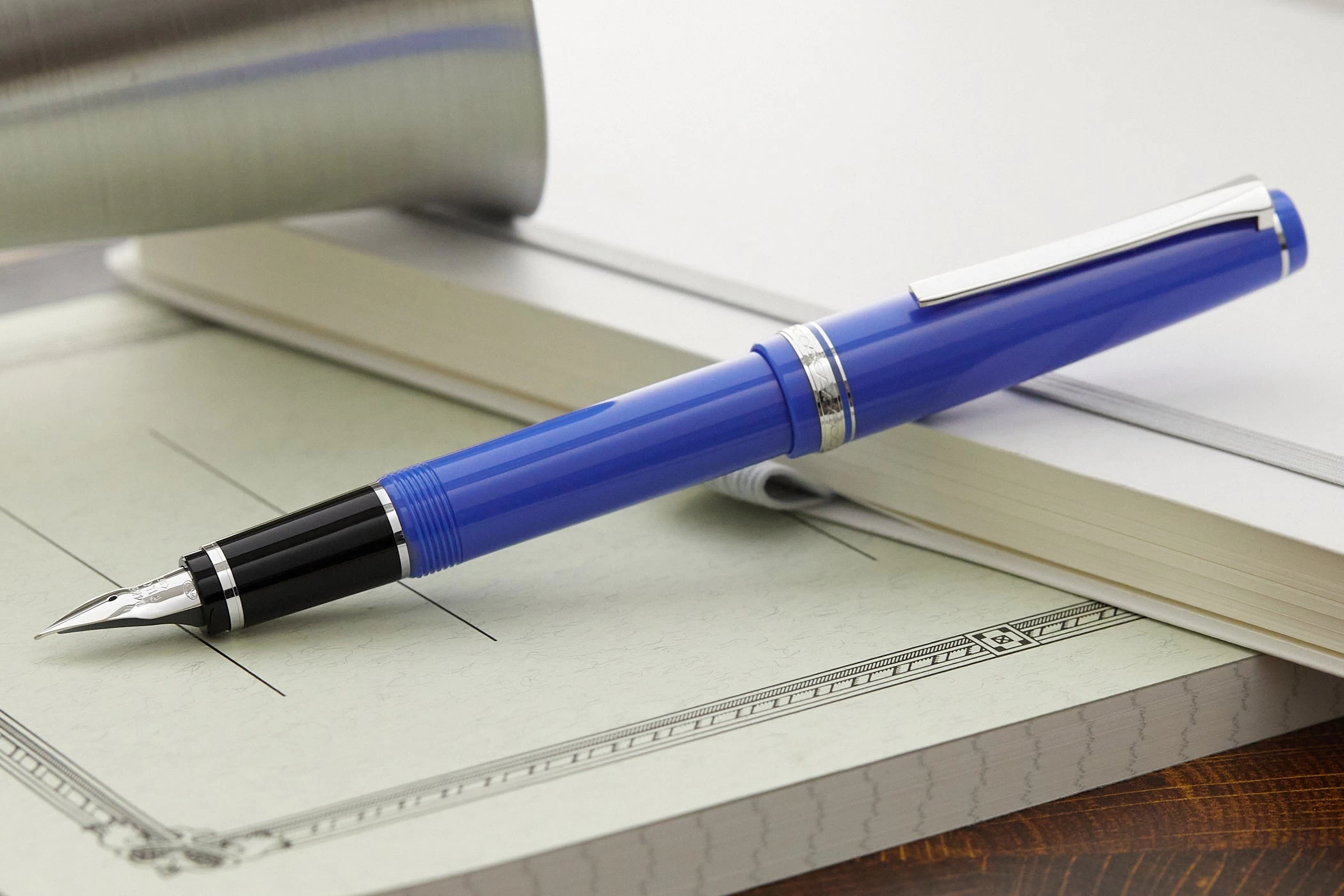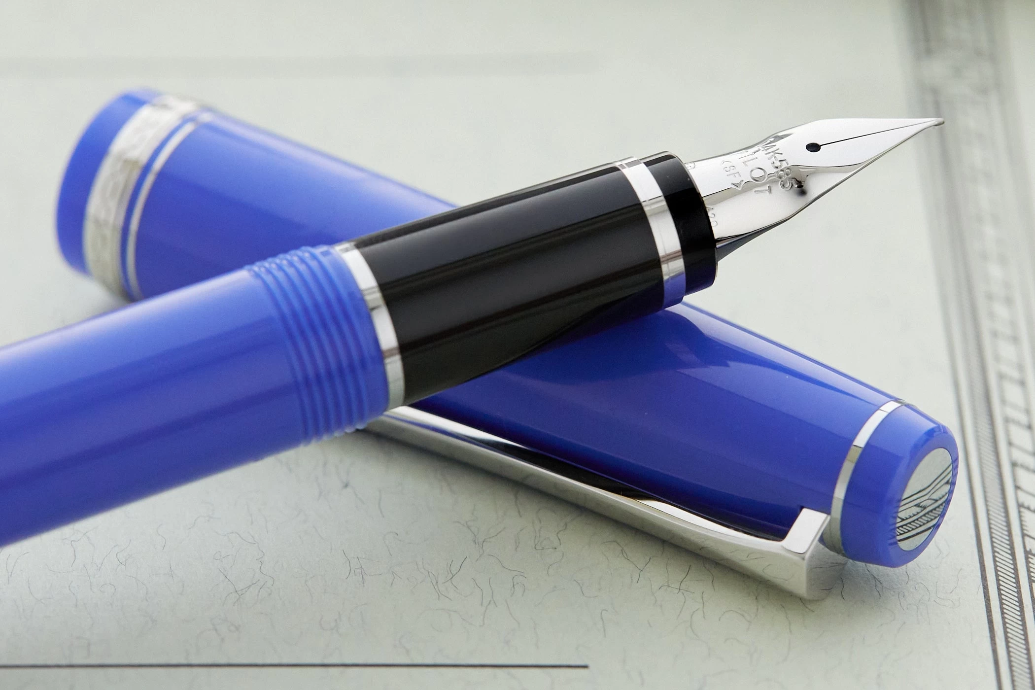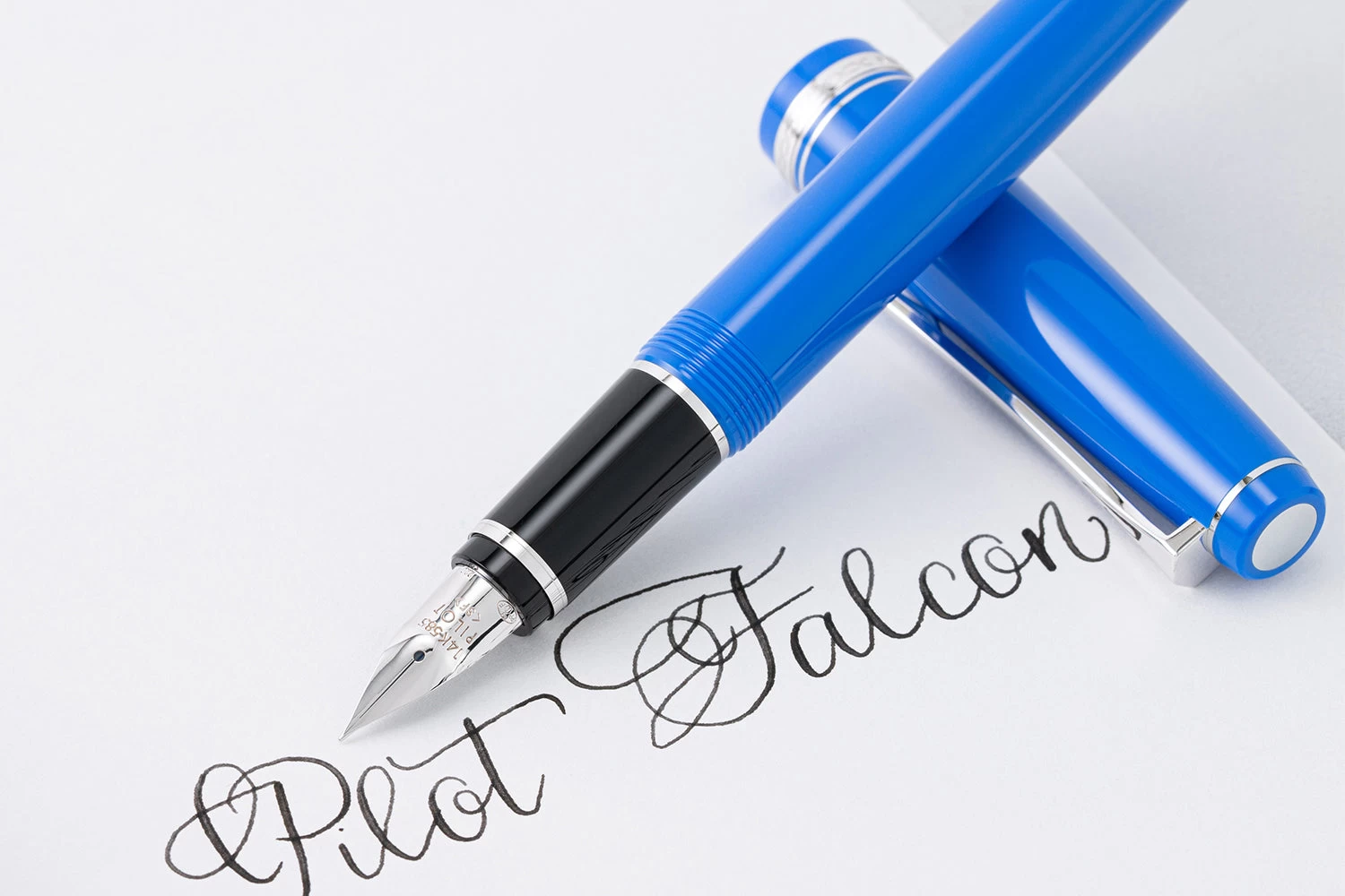 The Pilot Falcon (previously known as the Namiki Falcon) is an iconic pen in the fountain pen world. It is most famous for its rhodium-plated 14k gold soft nib, which provides line variation when you change your writing pressure. This solid blue fountain pen has rhodium trim and includes a Con-40 converter and a Pilot/Namiki ink cartridge, packaged in a Pilot gift box. This color is a US exclusive!