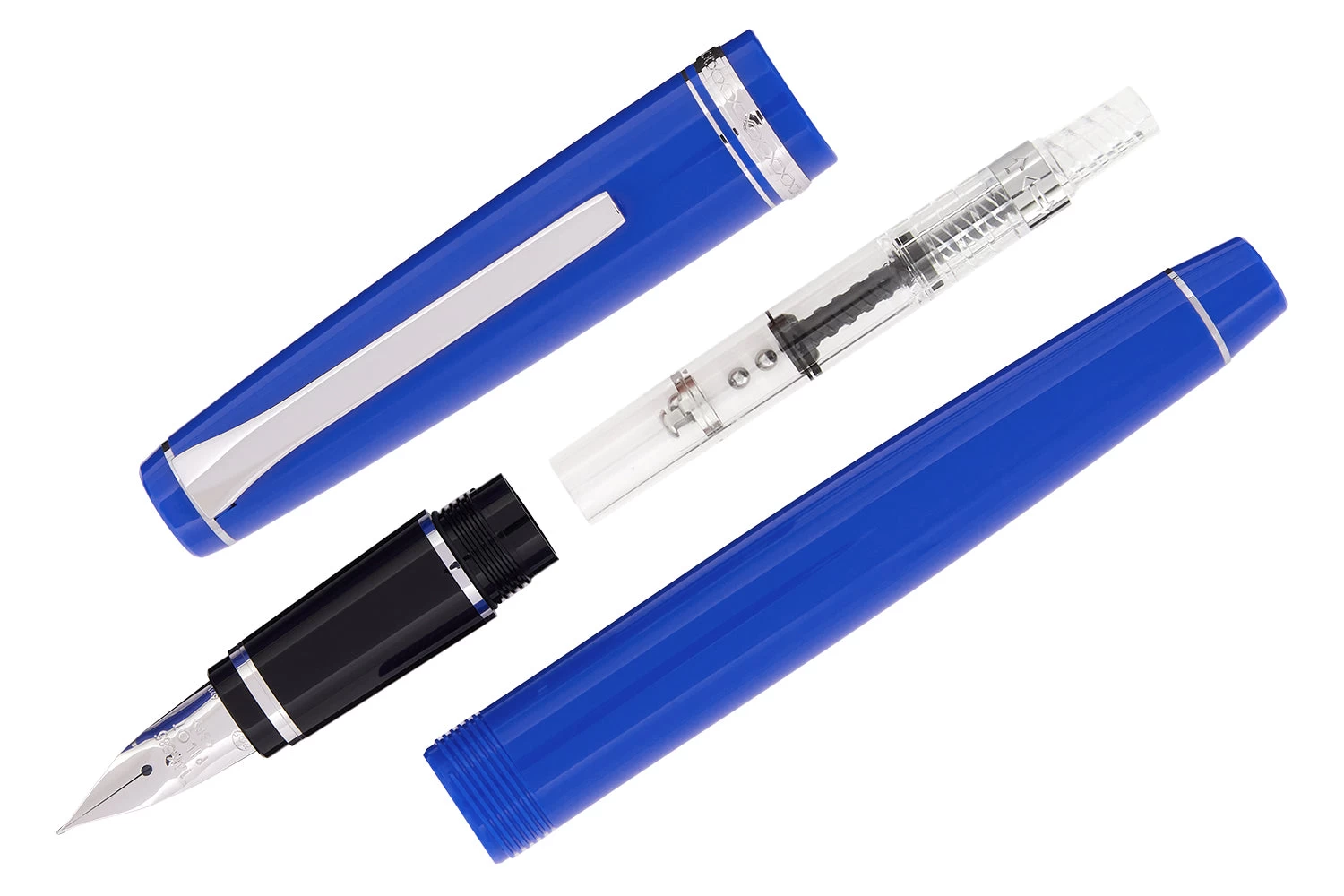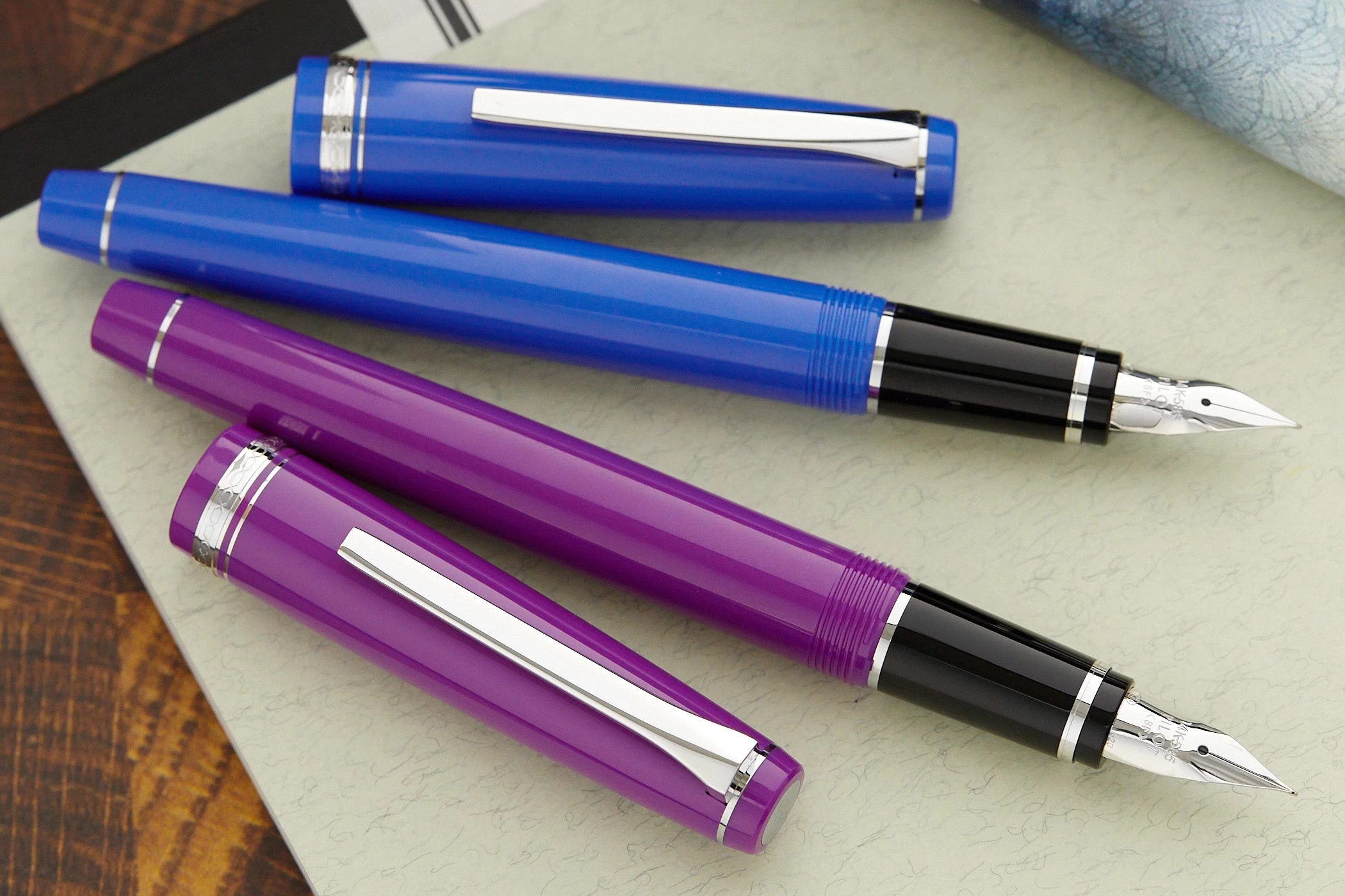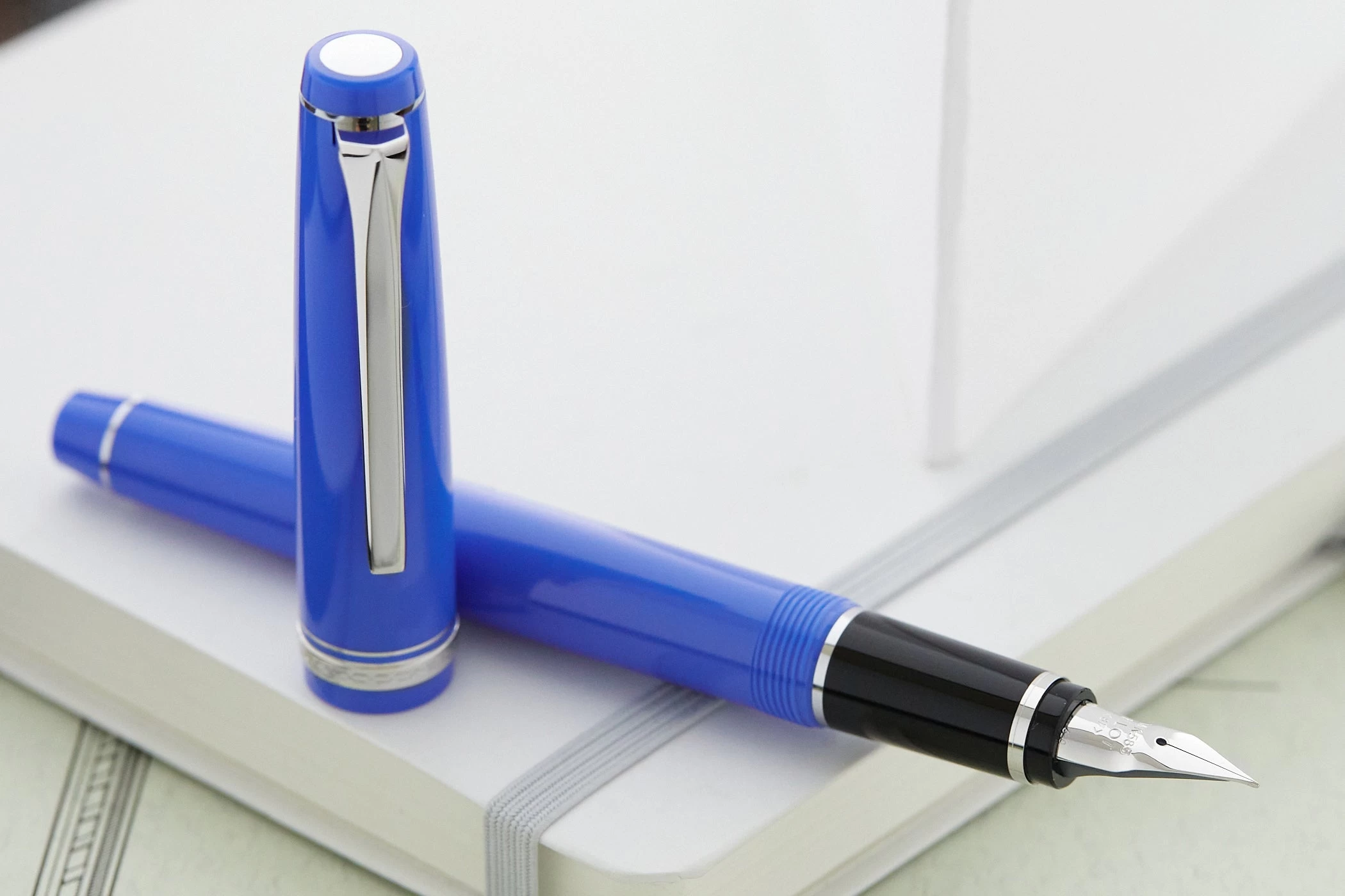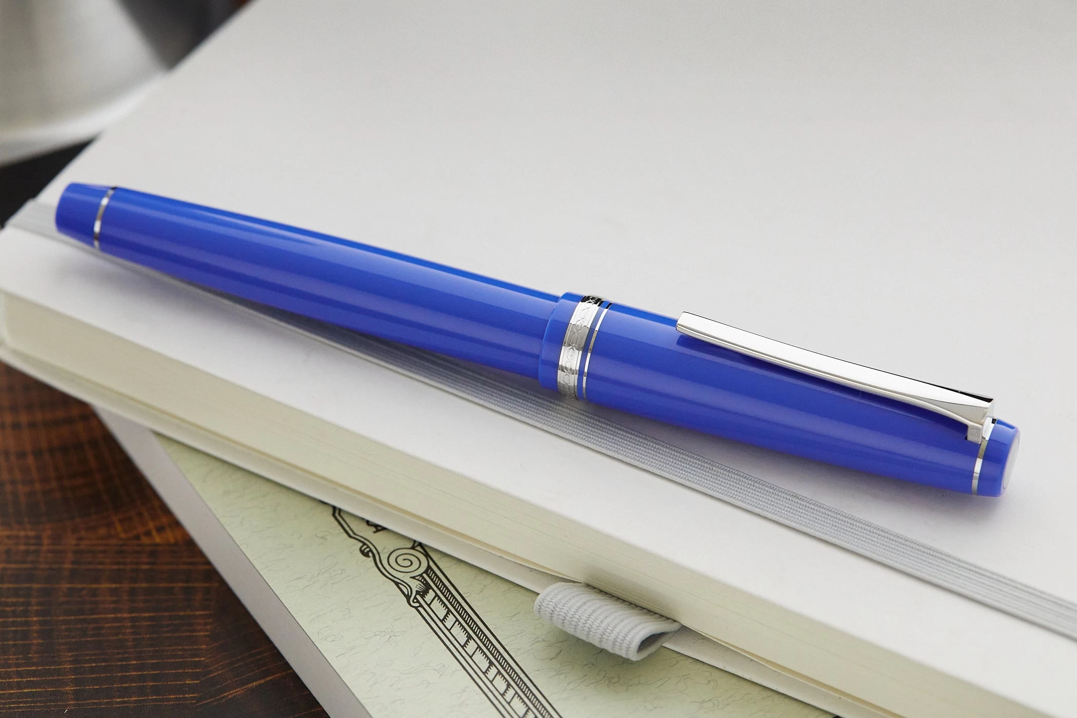 The Pilot Falcon (previously known as the Namiki Falcon) is an iconic pen in the fountain pen world. It is most famous for its rhodium-plated 14k gold soft nib, which provides line variation when you change your writing pressure. This solid blue fountain pen has rhodium trim and includes a Con-40 converter and a Pilot/Namiki ink cartridge, packaged in a Pilot gift box. This color is a US exclusive!