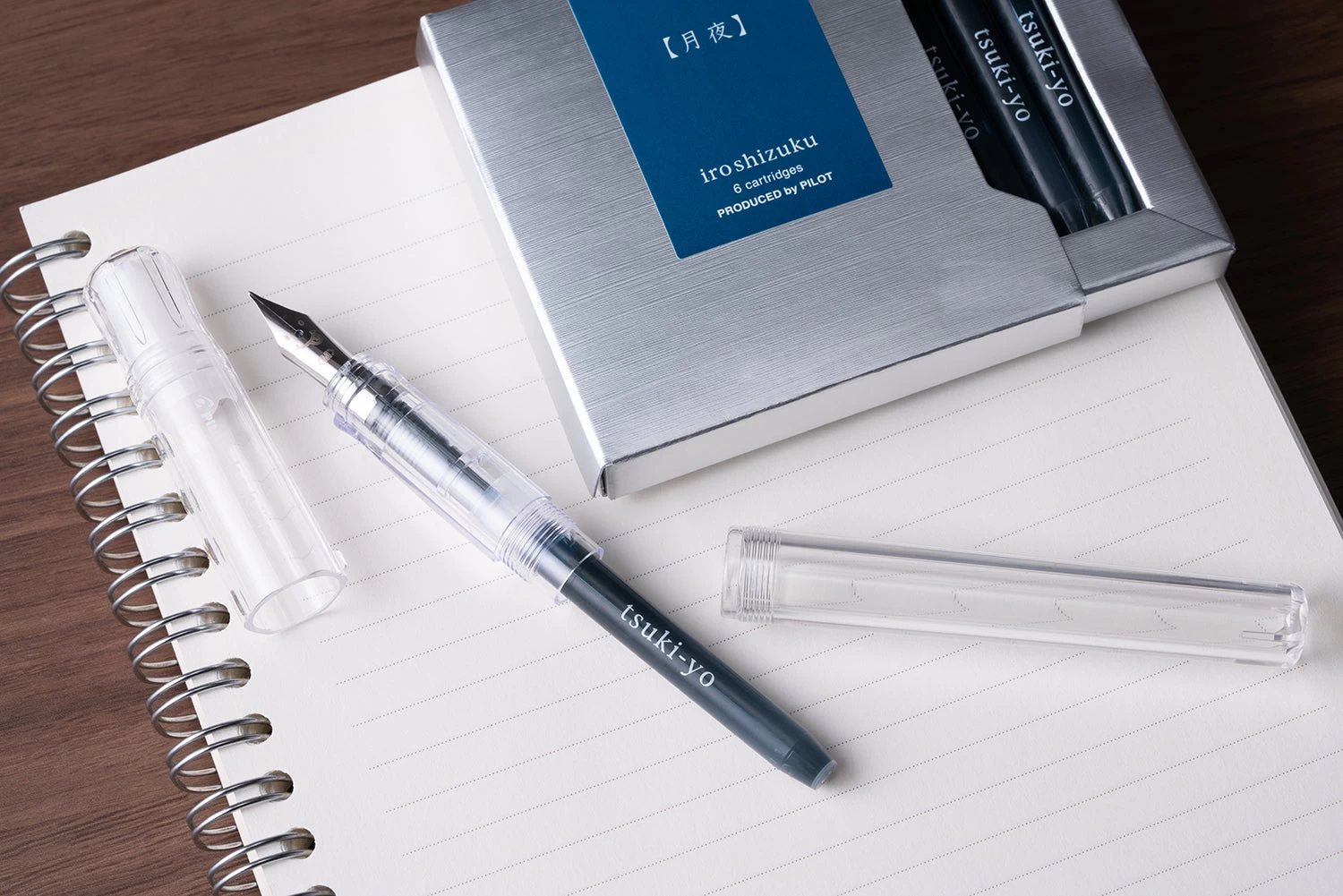 The packaging mimics the glass blown Iroshizuku ink bottle packaging. The inner tray slides out of the box and has an internal latch to stop it from fully pulling out. The perfect accessory to any Pilot fountain pen that accepts ink cartridges!