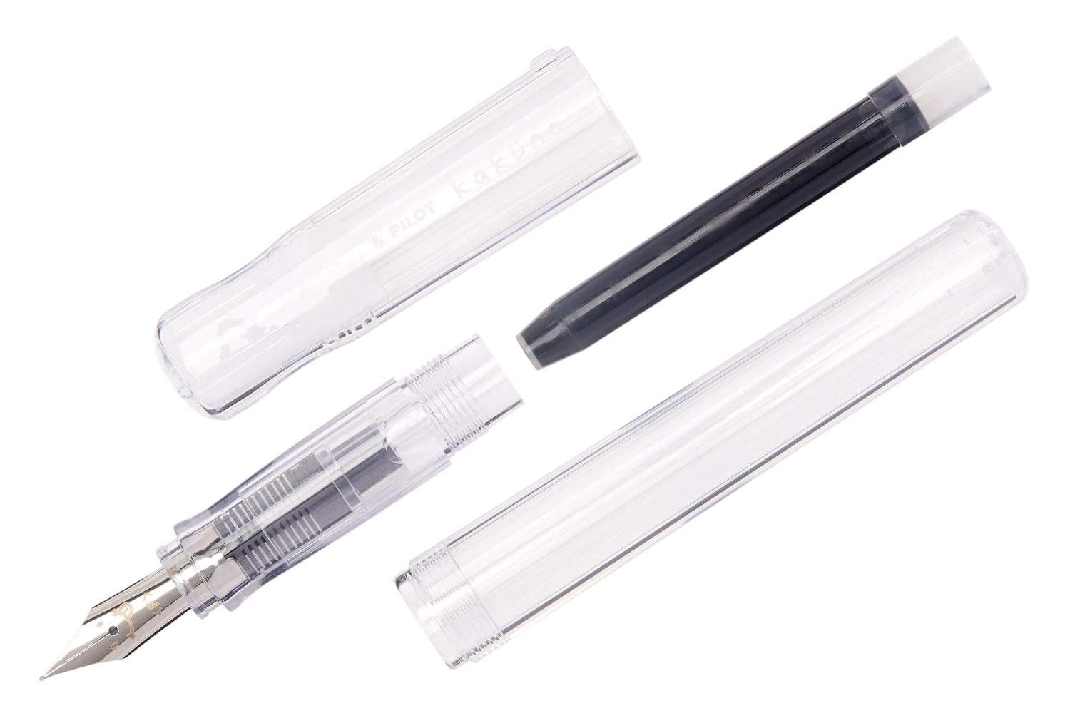 Kakuno is a delightful fountain pen that is ideal for both first time fountain pen users and experienced writers. “Kakuno” means “to write” in Japanese, and that’s just what this pen helps users to do by featuring an appealing smiley face on the steel nib, when oriented upward, ensures perfect nib orientation. This clear resin fountain pen has a hexagonal shape, similar to the classic wooden pencil, so that the pen is comfortable to hold and doesn’t roll away. Indentations in the cap also make it easy to grasp when uncapping the pen. A black Pilot ink cartridge is included to get you started writing right away. It also accepts a Pilot CON-40 or CON-70 converter (sold separately). Novices will soon be on their way to becoming seasoned fountain pen users, and seasoned users will enjoy the fun, exuberant writing the Kakuno fountain pen delivers. Everyone can enjoy writing with a Kakuno fountain pen.