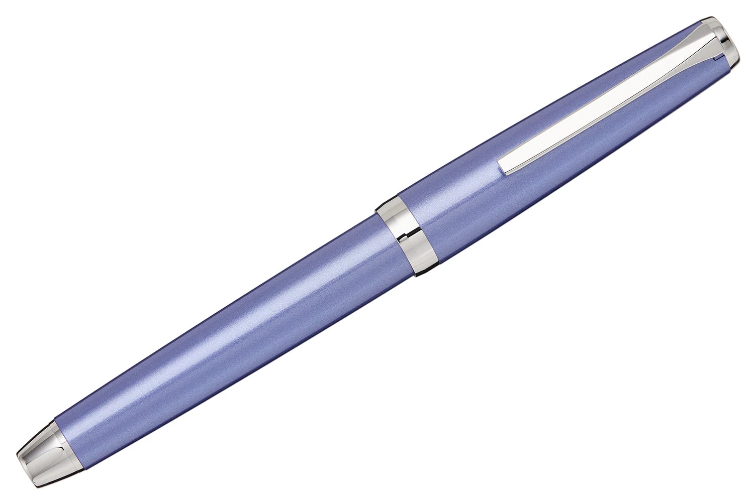 The Pilot Metal Falcon is a metal version of the very popular Falcon series. Slightly larger and heavier than the resin Falcon, this pale blue fountain pen pen has a soft rhodium-plated 14k gold nib that will give you line variation as you change your writing pressure. The slightly longer body has enough room to accommodate the included Pilot Con-70 converter, giving you greater ink capacity for longer writing sessions. You can also use proprietary Pilot ink cartridges or any other Pilot converter. There has been a slight change to the Con-70 converter design, so the one you receive may vary from what is pictured here.