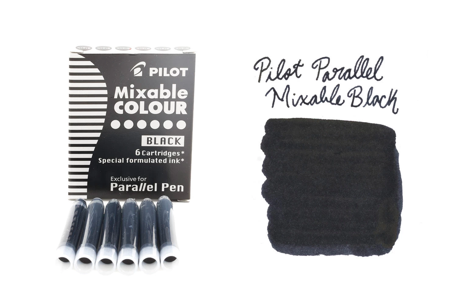 Use these ink cartridges in a Pilot Parallel fountain pen. When used with a second pen, you can achieve gradated color variation with these mixable inks. This box includes 6 black fountain pen ink cartridges.