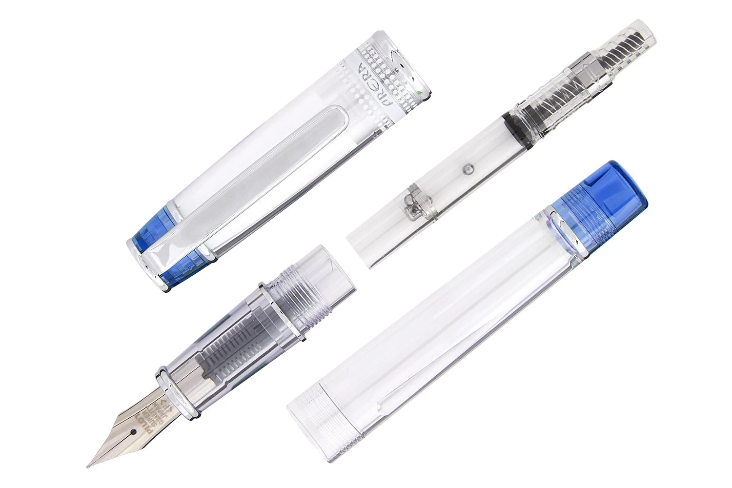 The petite Pilot Prera has a clean and simple look. This fountain pen has a crystal-like acrylic body with translucent blue colored accents. You can fill the pen with the ink of your choice by using the included converter, and the transparent body allows you to see the ink level remaining in the converter or an ink cartridge. The pen feels very well made, is ergonomically lightweight, and the steel nib is delightfully thin enough that you can use it for everyday writing. Each pen comes with a CON-40 converter and an ink cartridge to get you started writing right away.