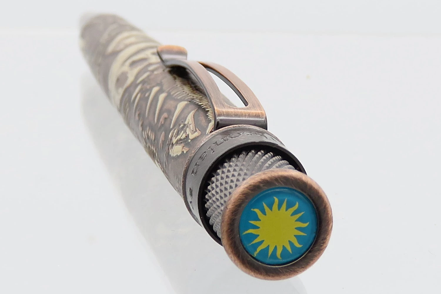 Think about someone you know that loves dinosaurs and will open this officially licensed Smithsonian Dino Fossil rollerball pen. Inside the commemorative tube they will discover a metal pen where you can actually feel the bones. It’s been plated in stonewashed copper to give it an unearthed look and finally top printed in ivory to highlight the several dinosaurs that wrap around the barrel. The top ring has been engraved with the Smithsonian name, plus it’s numbered and then imprinted with the Smithsonian logo on the top disc. This timeless twist-action rollerball pen features Retro 51’s signature knurled twist top and comes loaded with a black rollerball refill that flows with a medium stroke. It comes packaged in a matching tube. This pen is sure to make you roar!