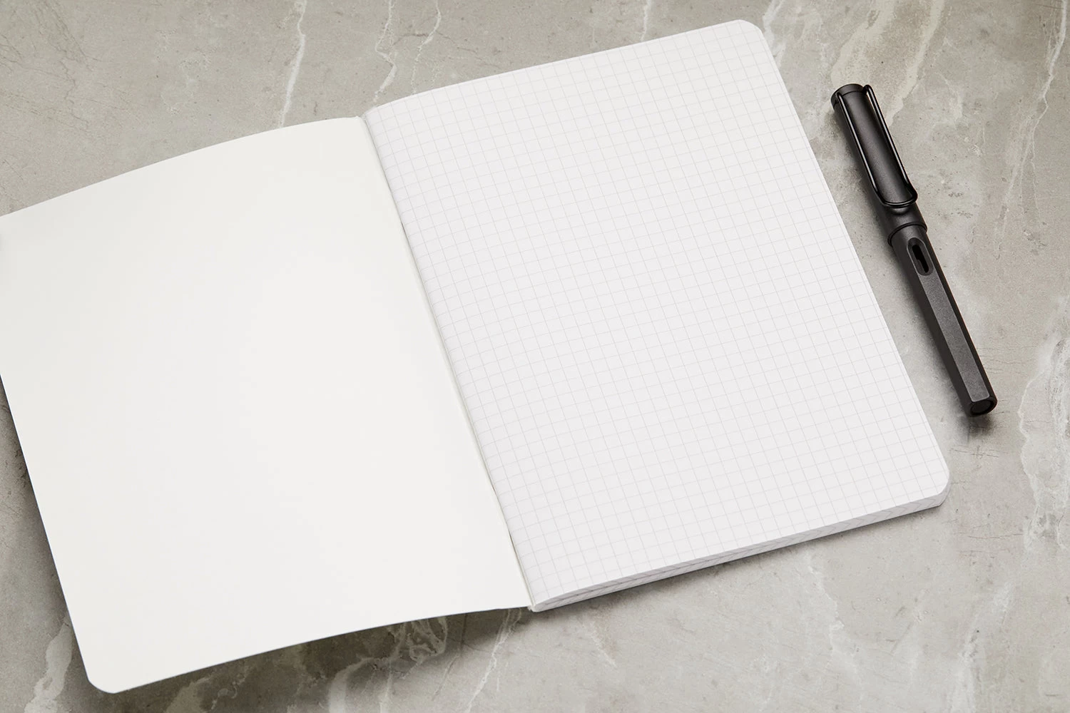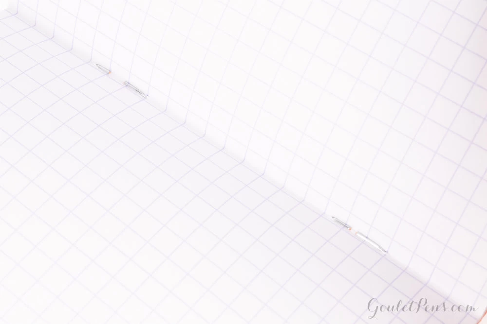This A5-sized white side-stapled Rhodia notebook features 48 sheets (96 pages) of extra white 80g acid-free, pH neutral 5mm graph paper and a coated and waterproof cover. These economical notebooks are a favorite of artists, designers, writers, and notebook fans for notes, sketching, and hand drafting. People love them for their grids, smooth paper, and iconic cover.