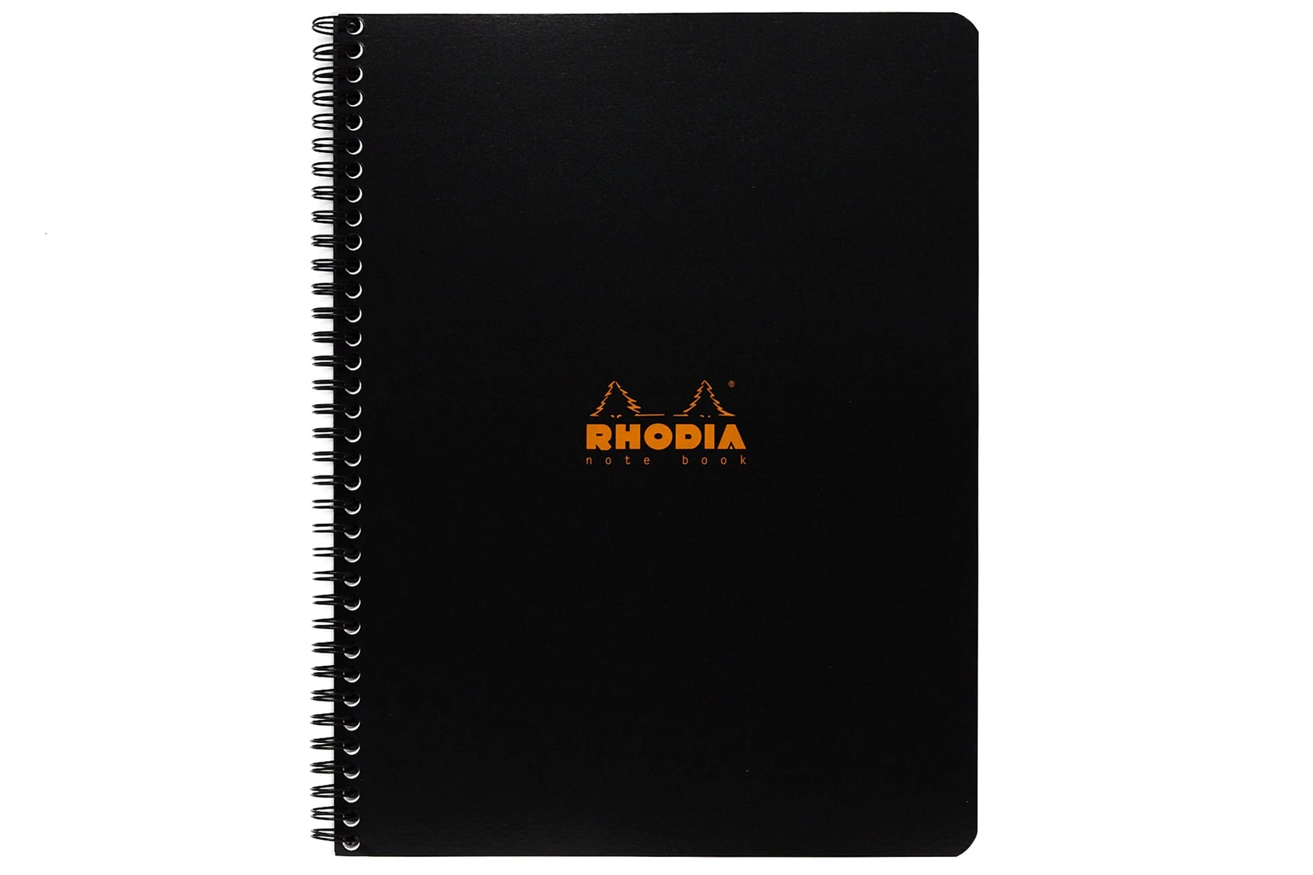 This black wirebound Rhodia notebook features 80 sheets (160 pages) of extra white 80g acid-free, pH neutral graph paper and a coated and waterproof orange cover. Each sheet is microperforated for easy removal, and a blank margin surrounds all four sides of each page.