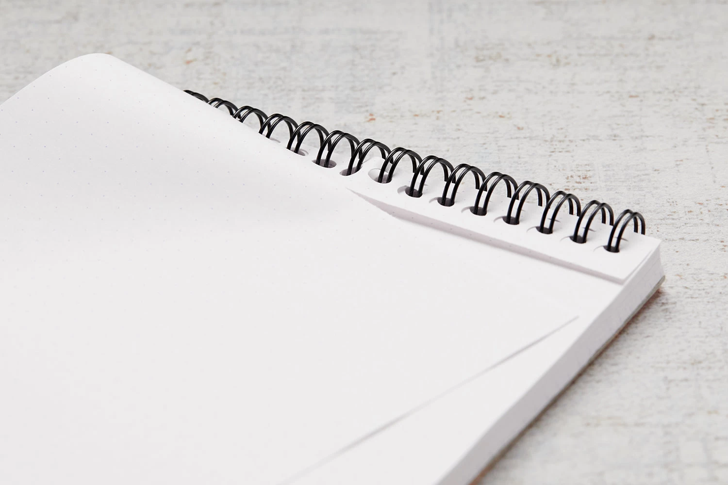 Dots are spaced 5mm apart, identical in dimensions to the graph ruling but much more subtle so it doesn’t visually compete with your writing. Typically Rhodia dot pads have dots that are tight, gray dots, but for the top-wirebound ones they are slightly larger and purple, like the color of the Rhoda graph ruling. The difference is subtle but worth mentioning.