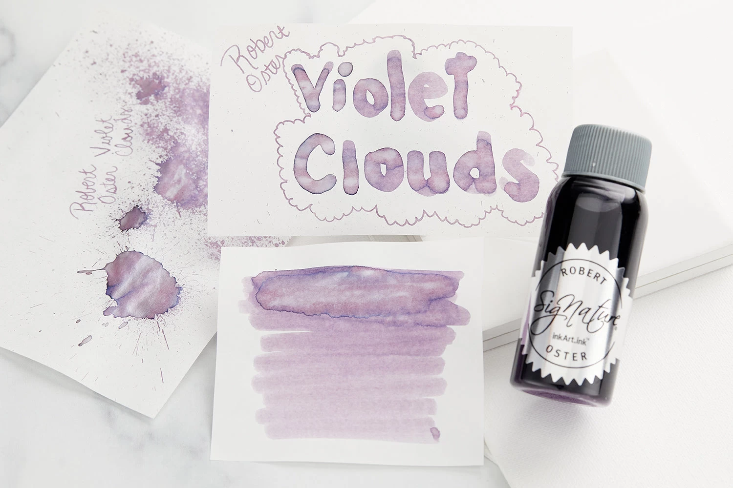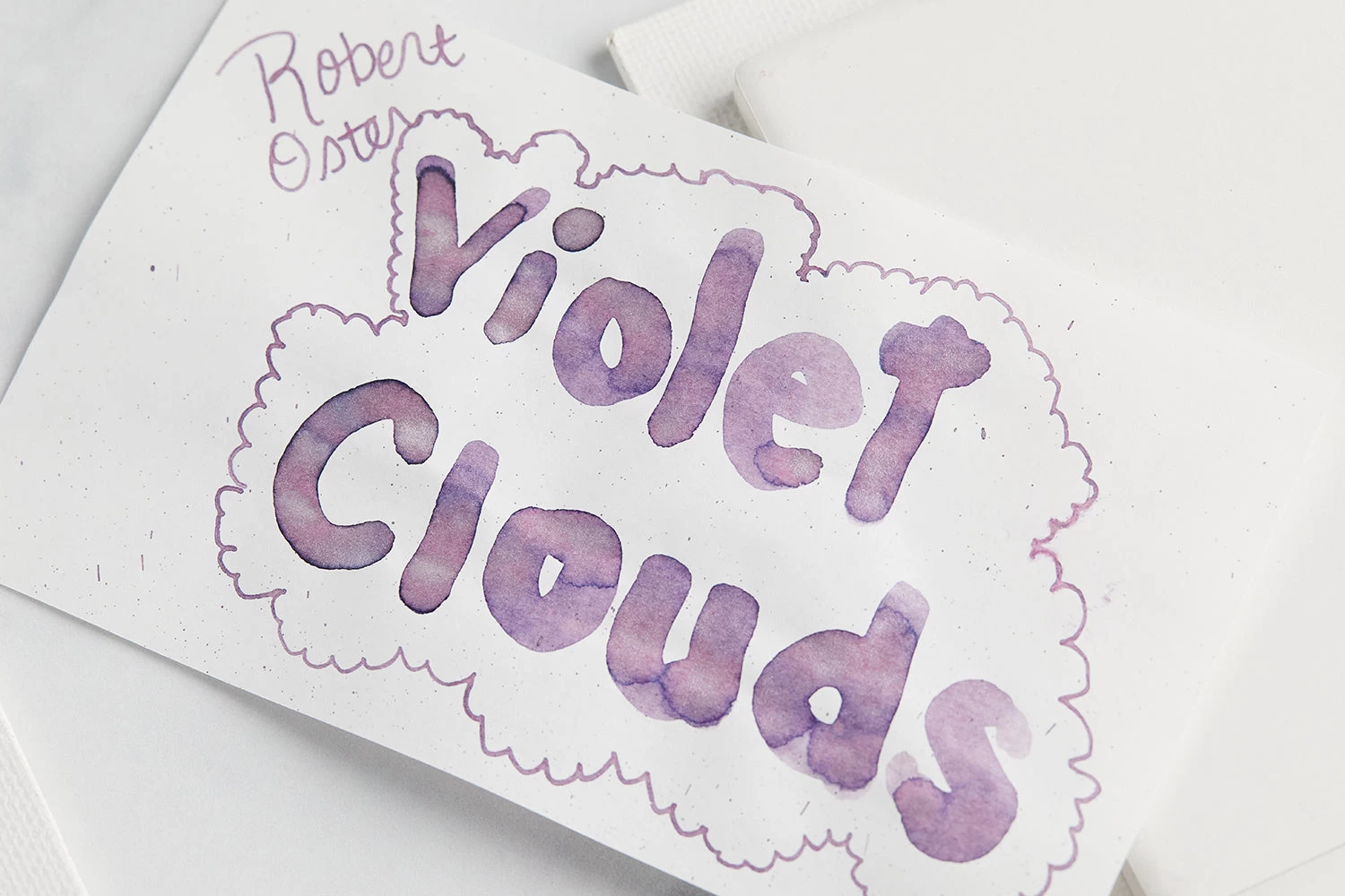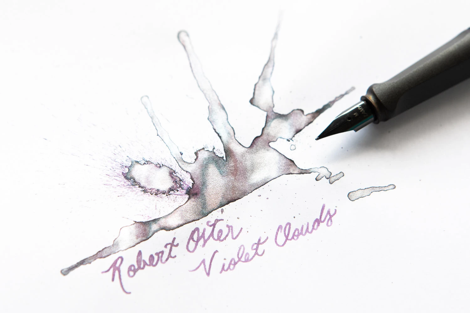 50ml plastic bottle of Robert Oster Shake ‘N’ Shimmy shimmering fountain pen ink in the color Violet Clouds. A pastel purple with added shimmer.