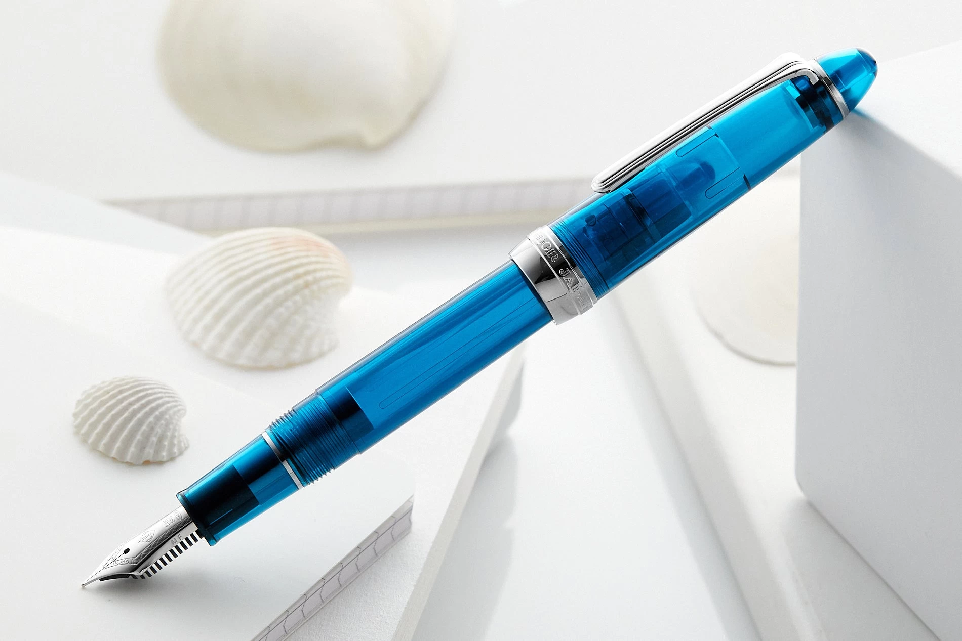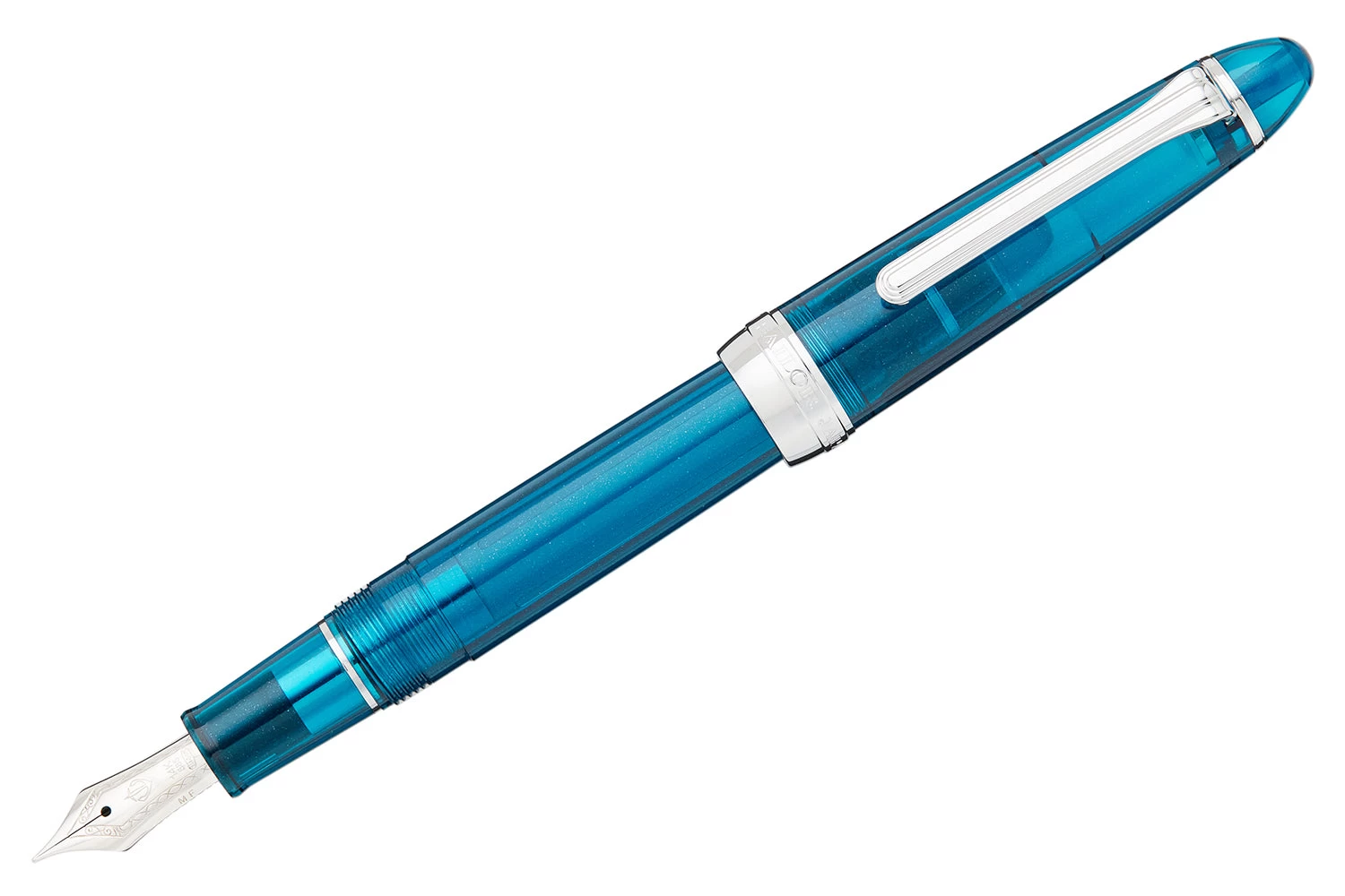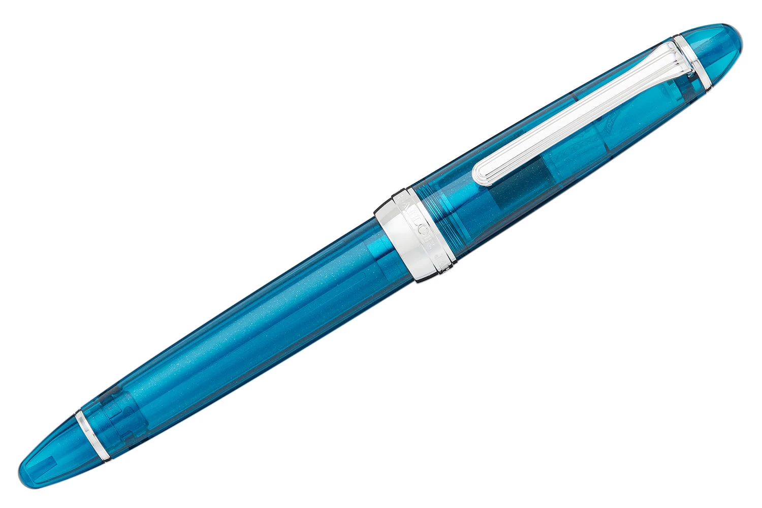 Freshwater Jellyfish has a beautiful blue color body and comes with rhodium trim and a 14k gold nib with rhodium plating. The cap screws to open/close and can push to post onto the back of the barrel when writing. The 1911S comes with a Sailor proprietary converter as well as two proprietary Sailor Black ink cartridges.