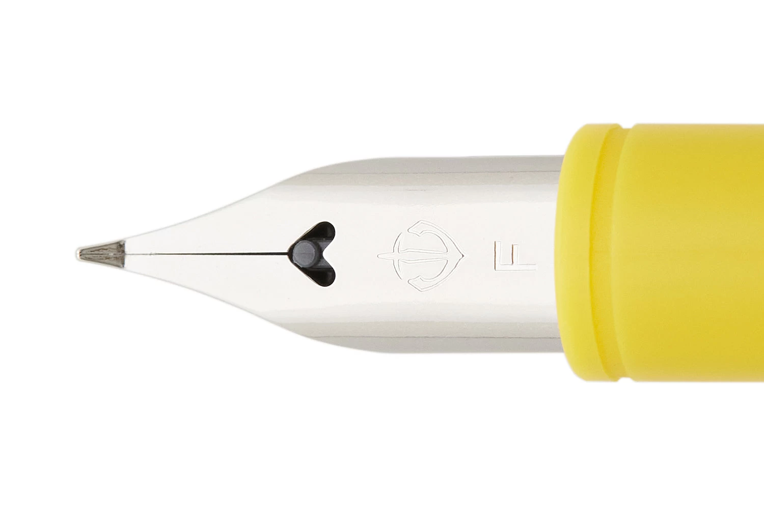 This Fude steel nib unit has a yellow accent and includes an attachable ink reservoir. It does not include the pen barrel which is available separately.