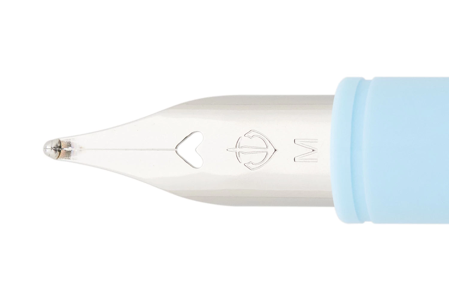This Medium steel nib unit has a light blue accent. It does not include the pen barrel or the optional attachable ink reservoir; both are available separately.