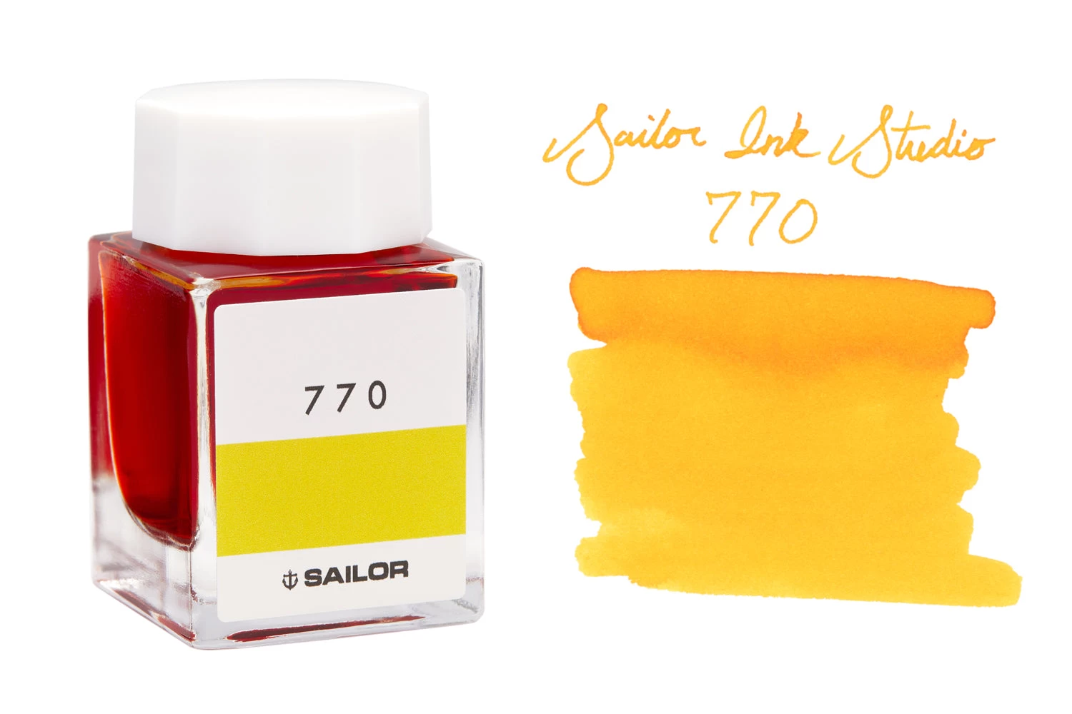 20ml square glass bottle of Sailor Ink Studio 770 yellow fountain pen ink.