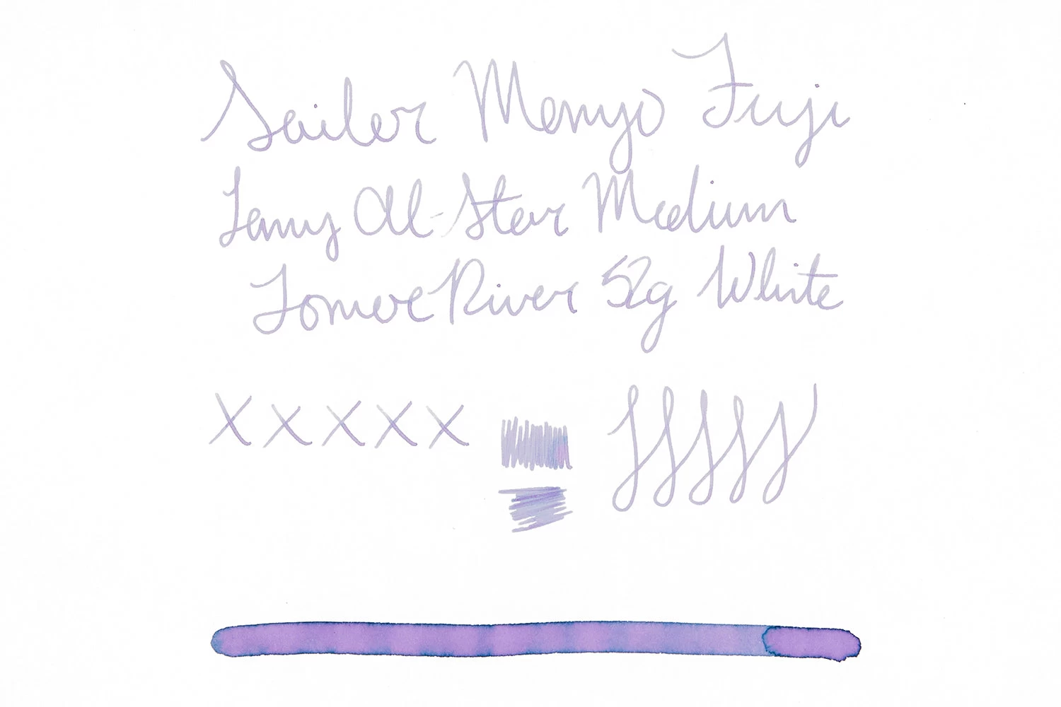 Fuji is a light amethyst purple that shades out to other purples. As part of the third release in the Manyo ink series, Fuji is a dual shading ink, which means it shades different colors than its base colors when pooling into areas of high and low concentration on the paper. Dual shading inks are really fascinating.