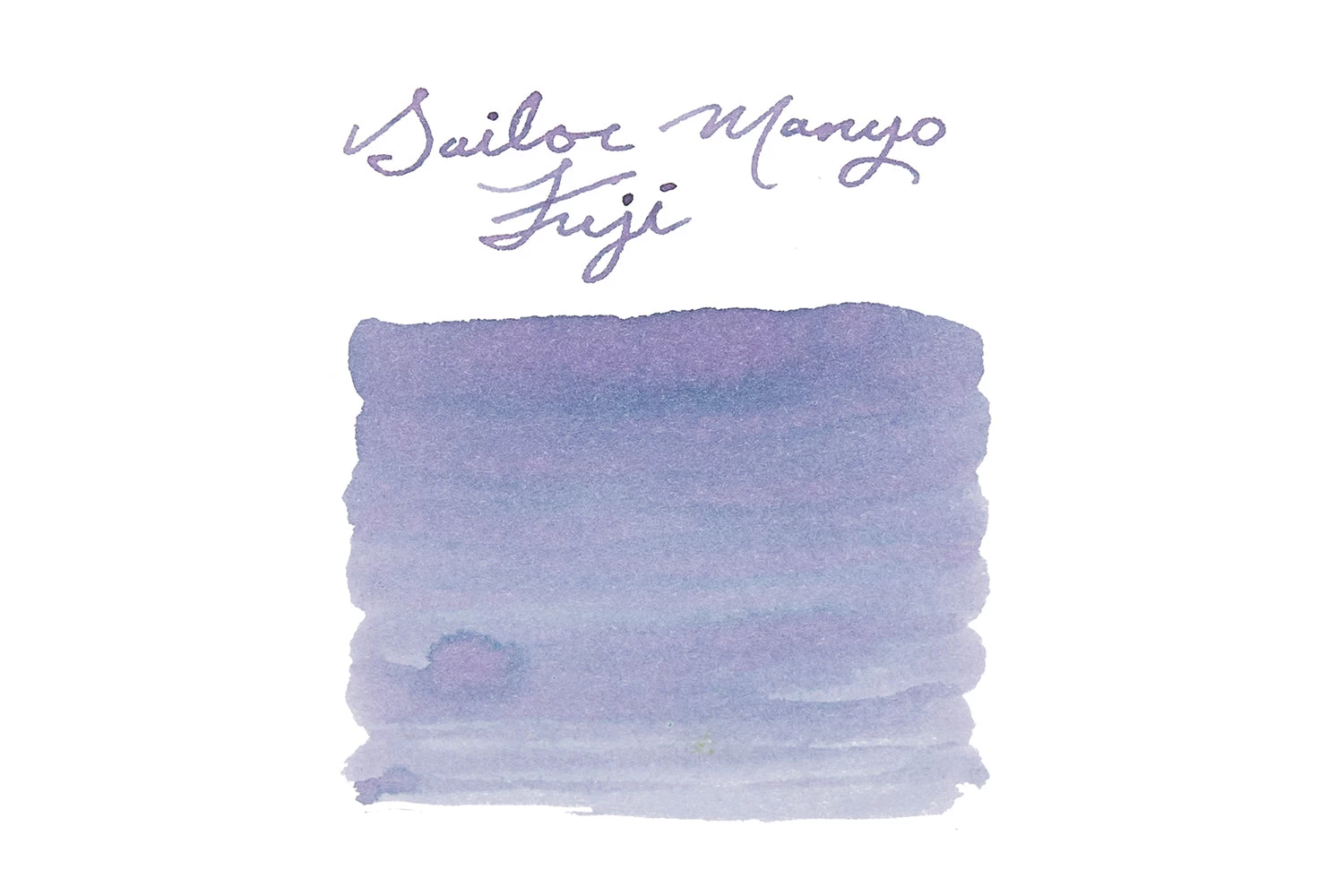 2ml sample of Sailor Manyo Fuji dual shading fountain pen ink, in a labeled plastic vial. This smooth-flowing water-based dye ink is specifically formulated to be safe for all fountain pens.