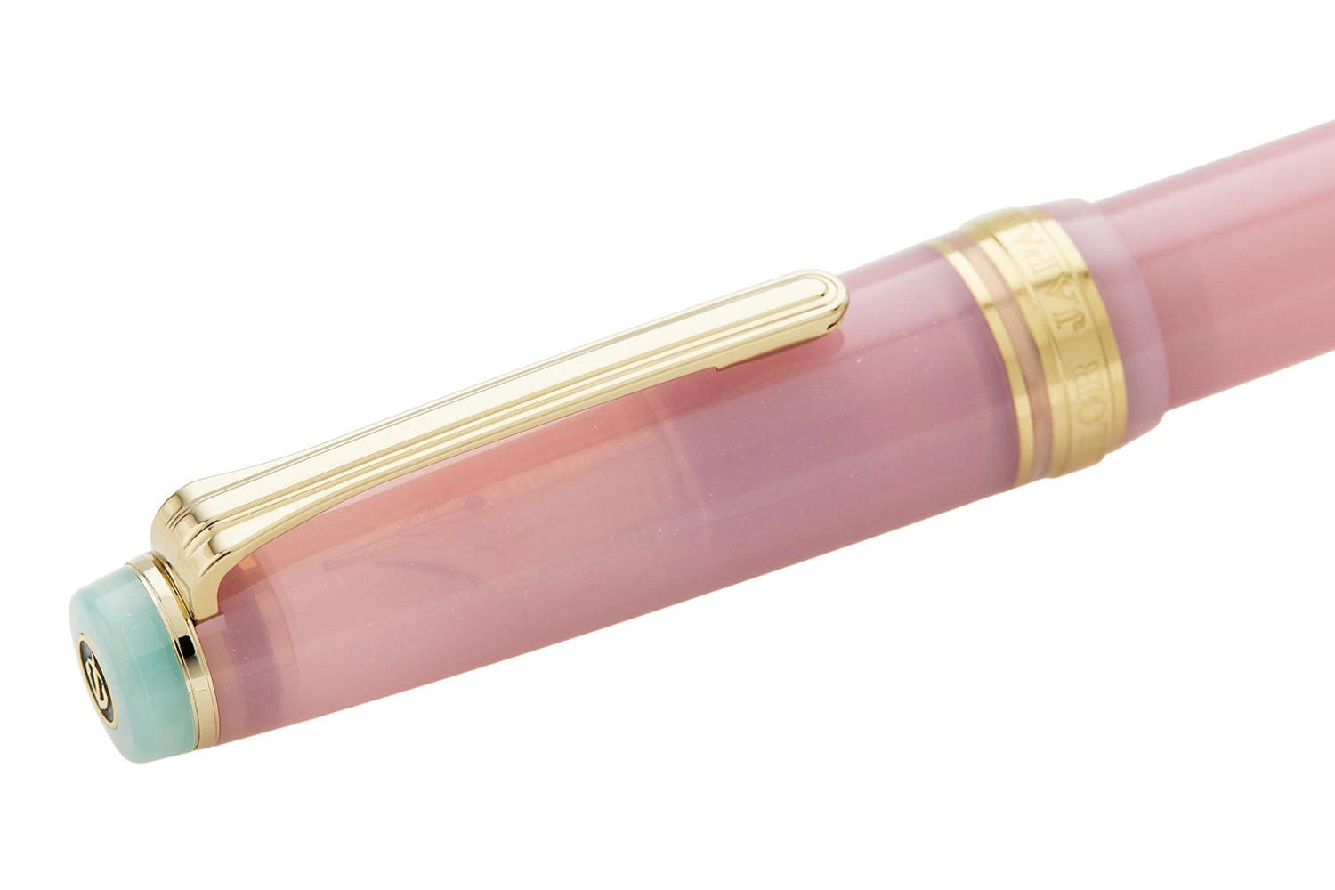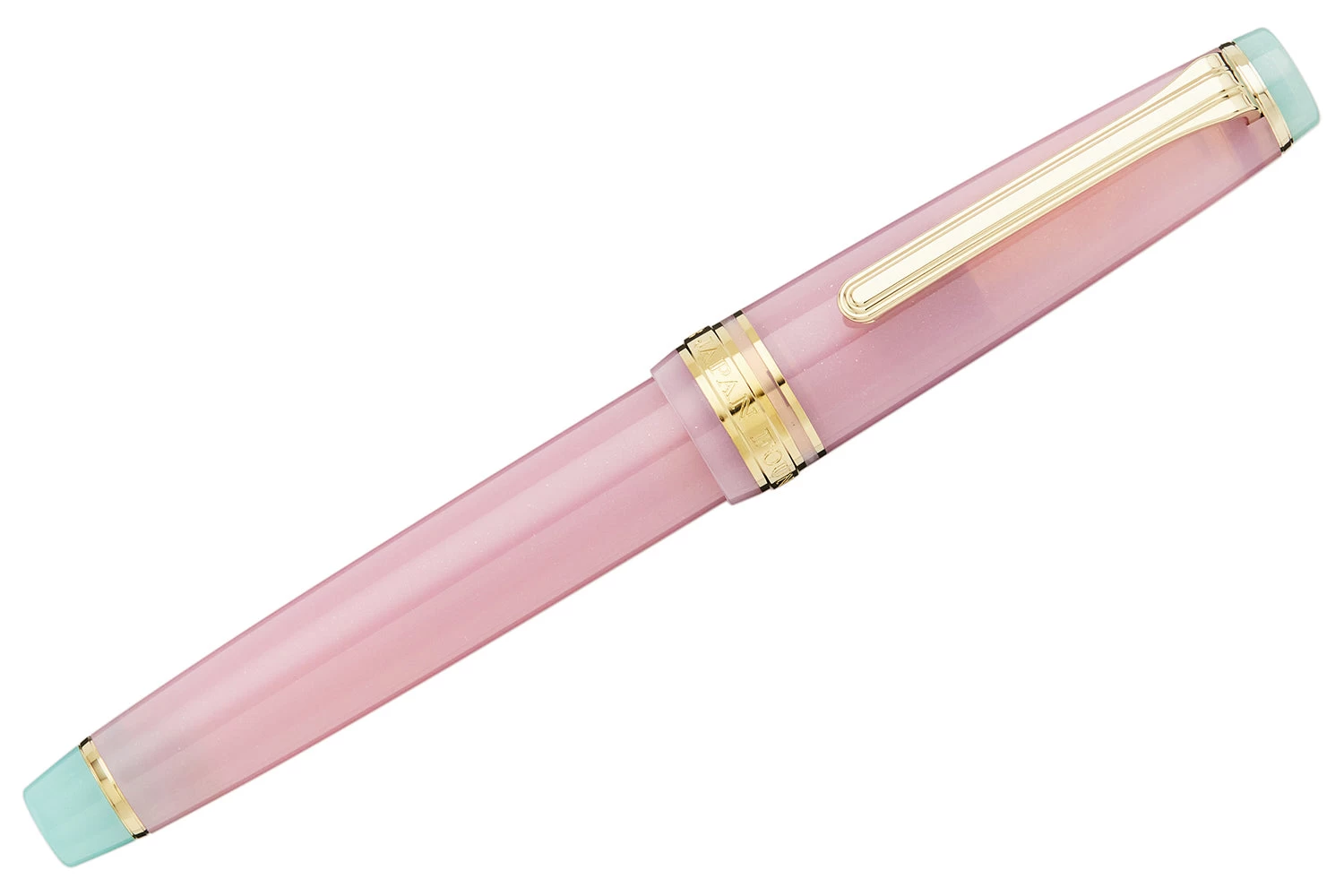 This fountain pen, Hagi, captures the spirit of the autumnal equinox with colors inspired by the autumn bush clover: a shimmering soft petal pink capped by seafoam green finials.