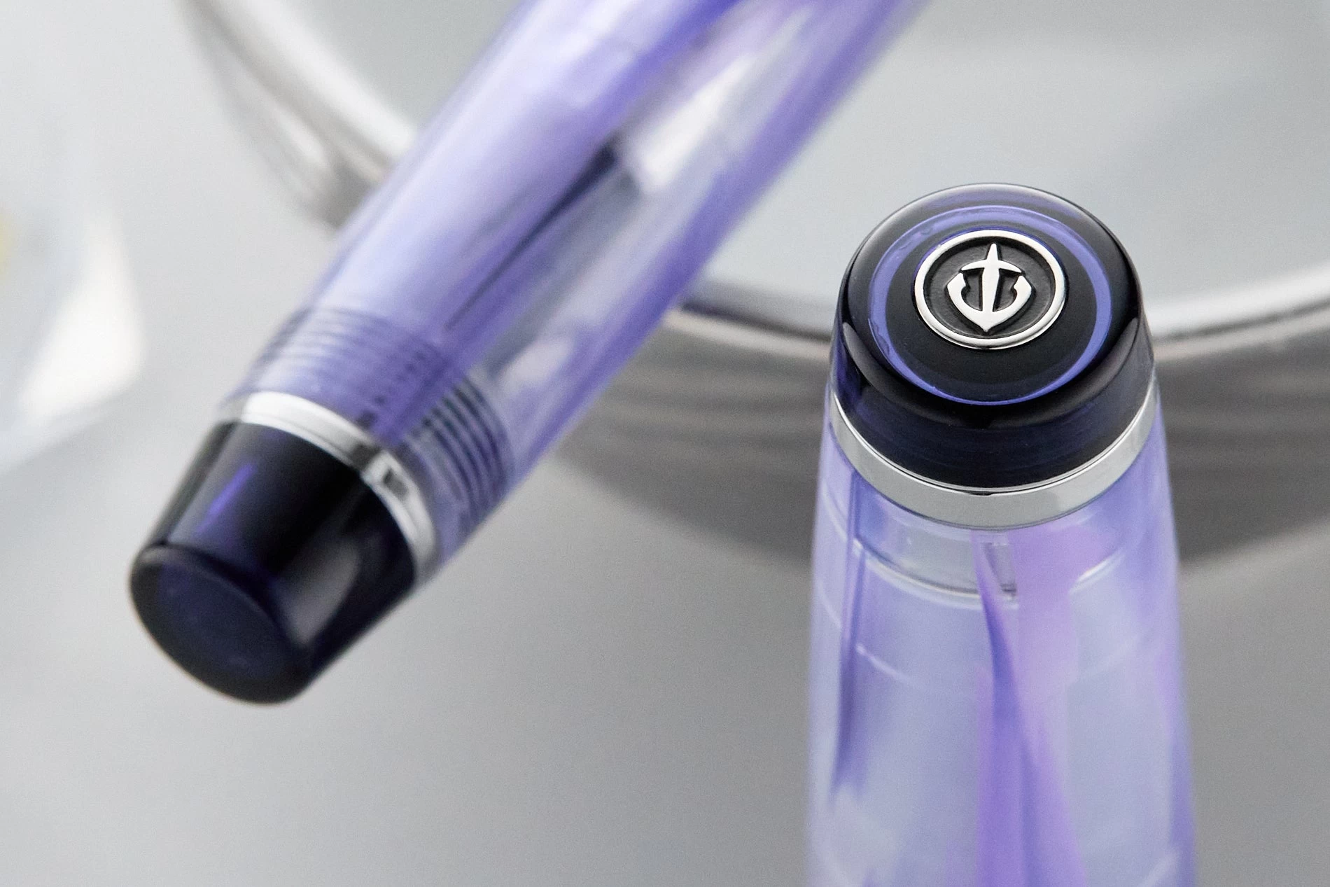 Revel in the true elegance of ink with this BESPOKE by Sailor: Veilio. The artistic vision of Veilio captures the look of a softly draped veil. Beautiful acrylic rods are cut, bored out, and polished to make these transparent fountain pens shine, making each one uniquely special. A limited-edition color-matched converter is also designed to blend in seamlessly.