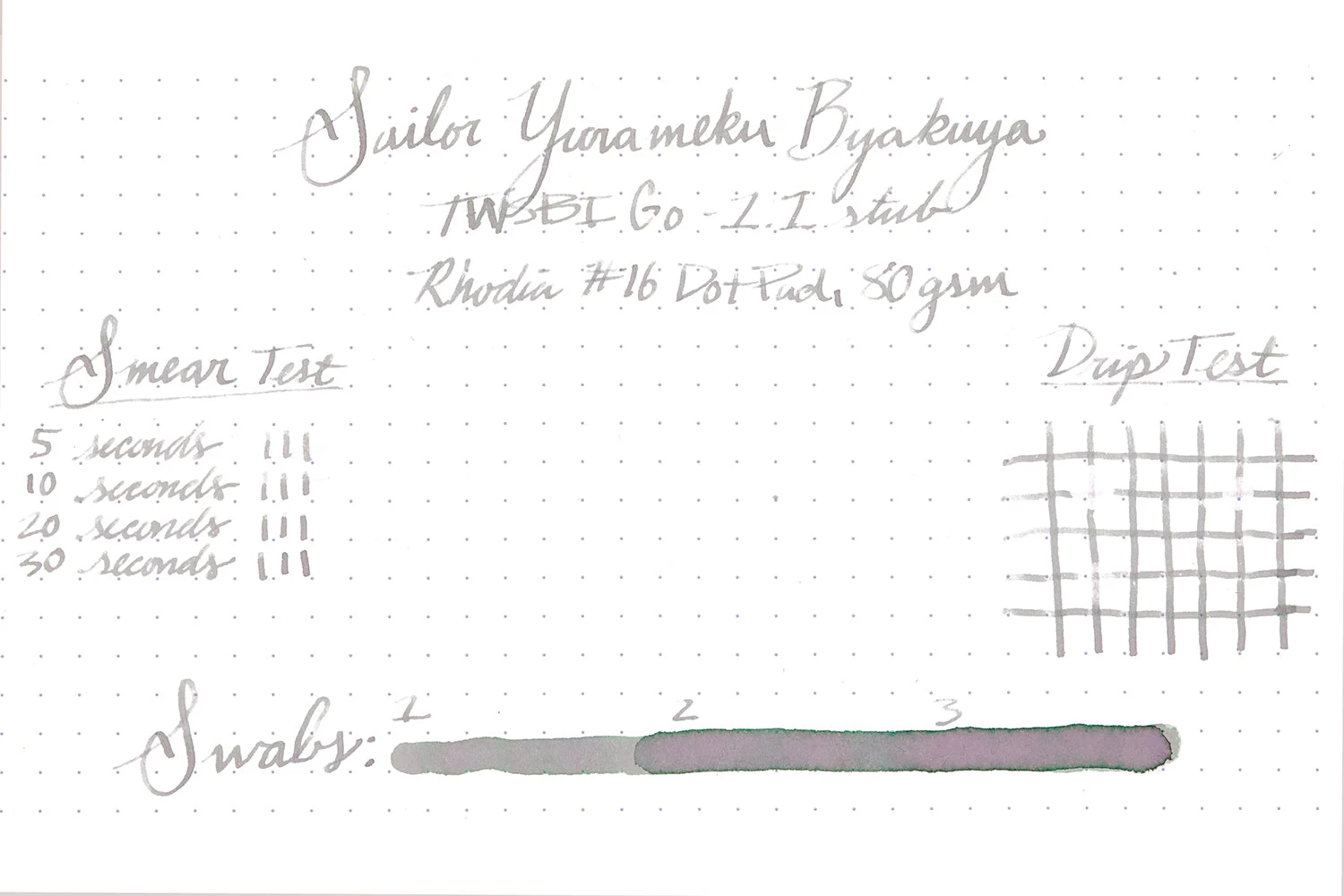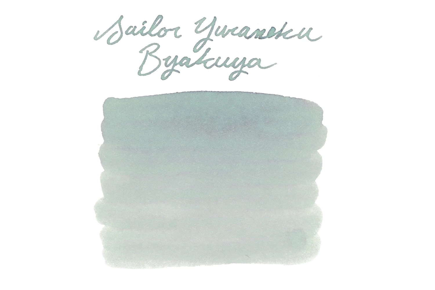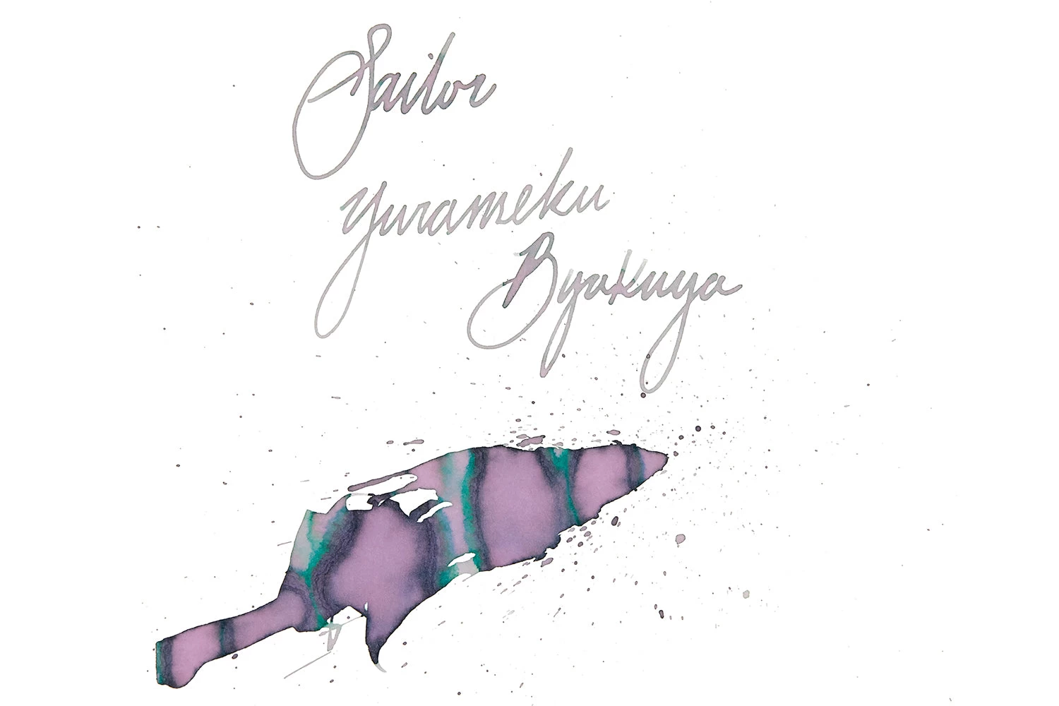 2ml sample of Sailor Yurameku Byakuya fountain pen ink, in a labeled plastic vial.
