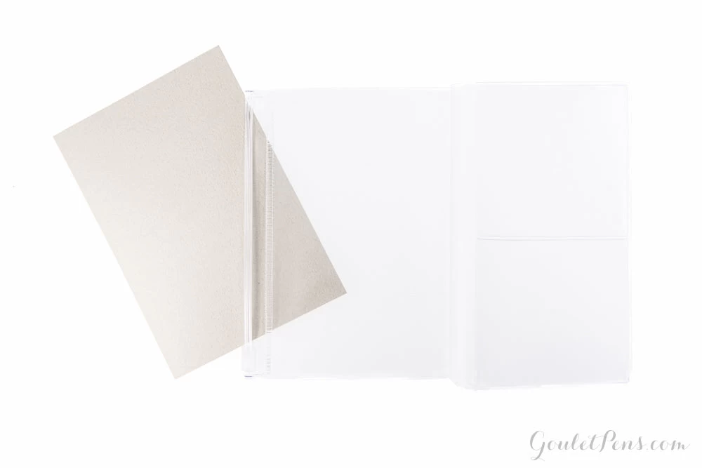 One side is a Zipper pocket, and the other side is a pocket. Insert it into the outside of the passport size Traveler’s Notebook refill notebook. One side is a zipper pocket to hold certificates of receipt, coins, etc., and the other side is a pocket to keep your flight mileage card and other things. Made of PVC.