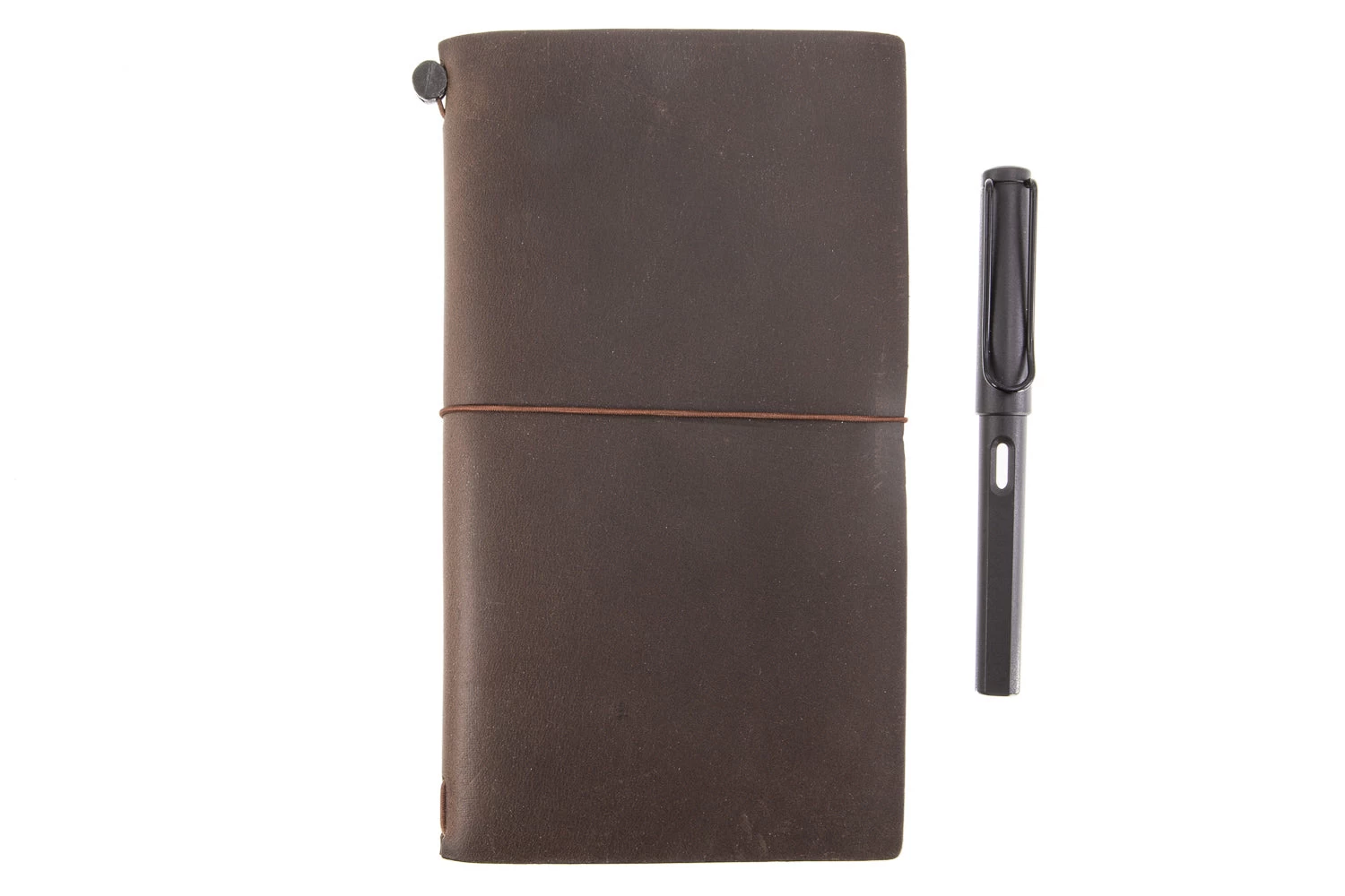This is the starter’s kit of the regular-sized Traveler’s Notebook. It comes in a package which contains a brown cowhide leather cover, a blank notebook, a cotton case, and a spare closure rubber band (of a different color). The simple and rustic texture is self-assertive in an unobtrusive way.