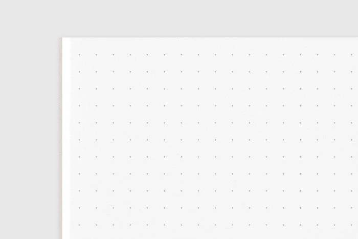 A notebook refill with small dots in 5mm intervals. These dots are excellent for writing graphs and boxes or as a guide in writing and illustrating that isn’t obtrusive or in the way. Try out the myriad of enjoyable ways to make use of the dots, from making comic book panels or a layout like a magazine, to using them to keep track of spacing like traditional Japanese writing paper.