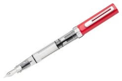 The TWSBI ECO-T fountain pen boasts an incredible value with its piston filling system and affordable price. Like many other TWSBI fountain pens, it features a crystal clear acrylic barrel so you can see your ink level, and a red cap and finial. The pen cap has an inner cap to ensure a perfect seal when stored away. It is completed with silver trim and a silver stainless steel nib. The ECO-T differs from the ECO in that it has a triangular grip section for ease of holding the pen, and triangular shaped cap and piston knob instead of hexagon.