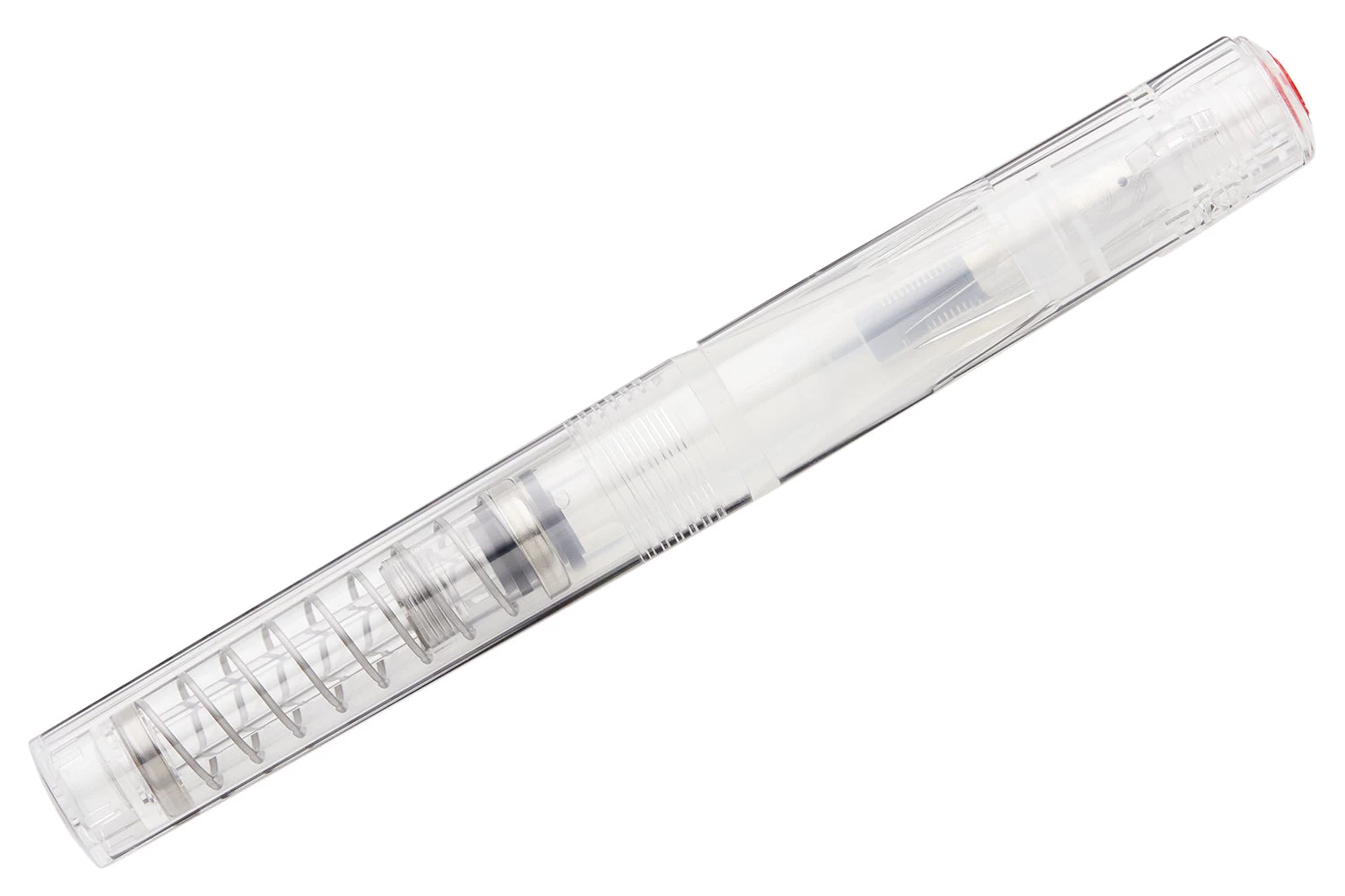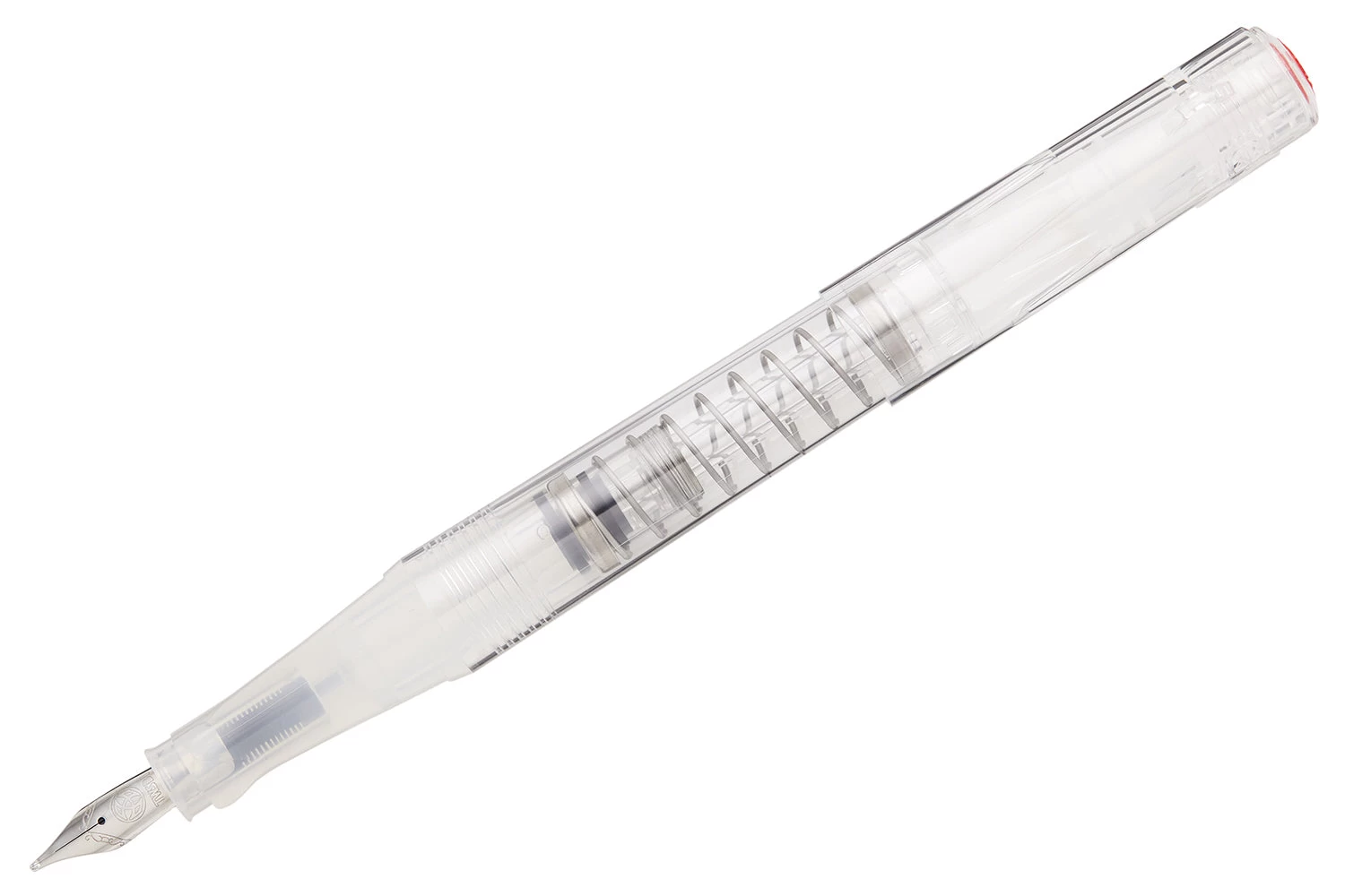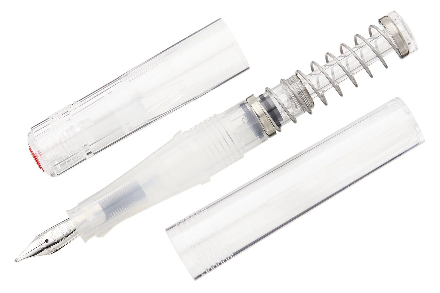 The TWSBI GO is the most affordable TWSBI fountain pen yet! A unique feature of this model is the spring loaded piston. This resin pen has a clear body and clear grip section, so you can see your ink and the spring piston mechanism at work, and has a clipless push/snap cap. It is completed with a silver stainless steel nib.